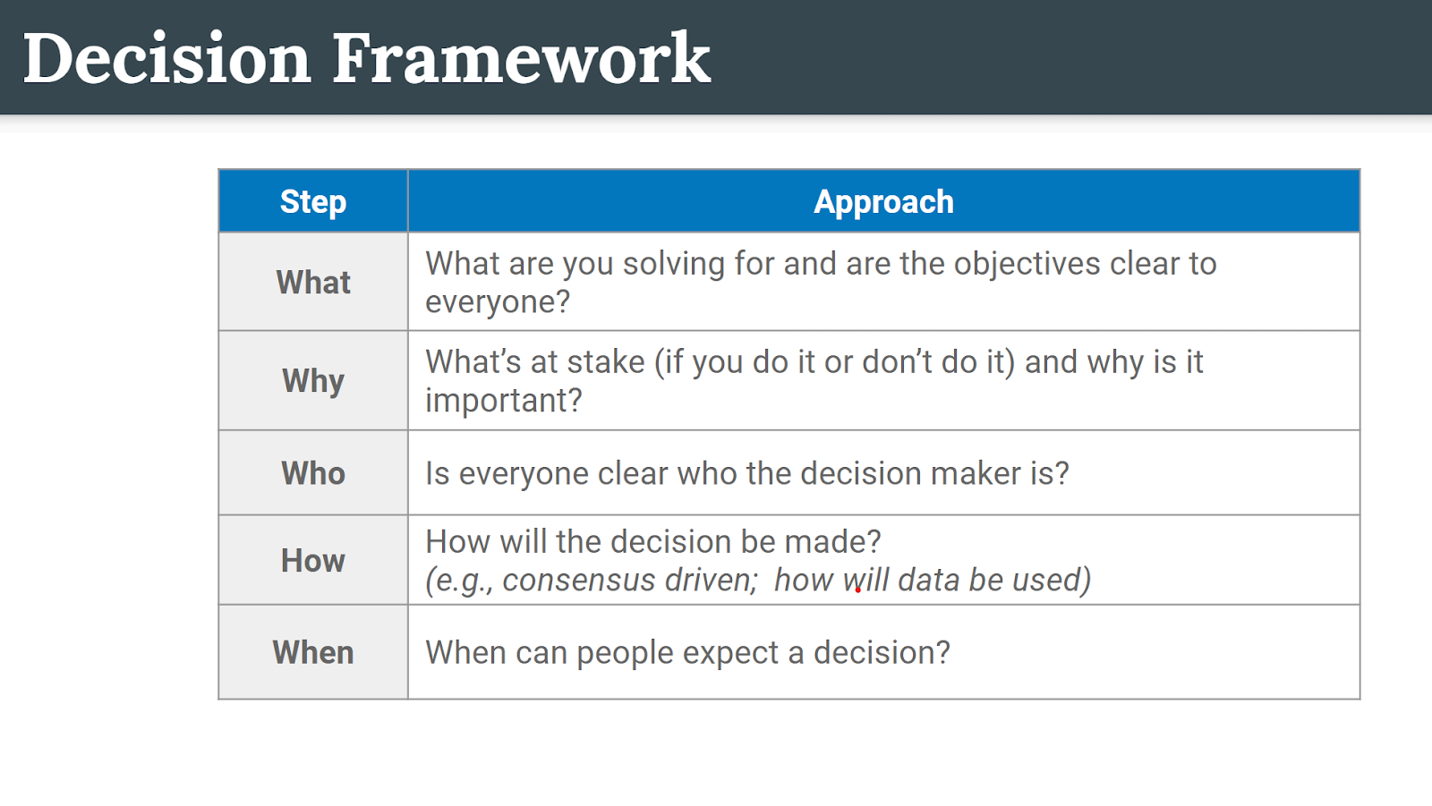 -- Define process -- what is input , what is output . Set the boundries of the team
